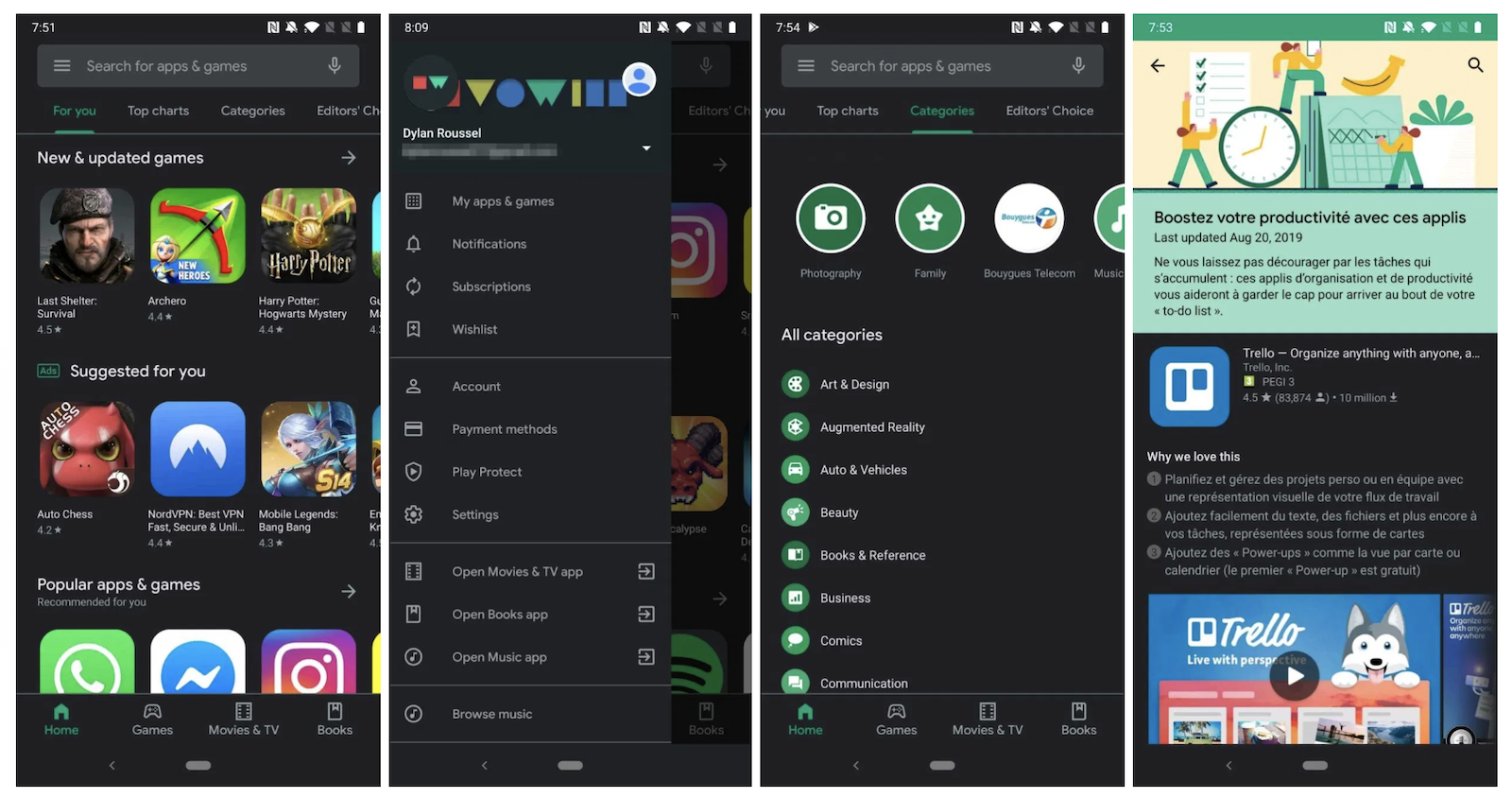 タイミングを同じくして、Google Playアプリにもダークモードの配信が開始されています。ダークモードの適応条件は、上と同じです。